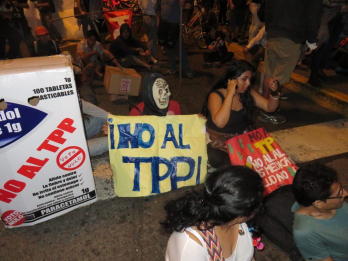 (Lima, Perú) Cientos de jóvenes hicieron sentir hoy su rechazo al Acuerdo  Comercial Transpacífico, conocido por sus siglas en inglés como TPP, durante una concurrida  marcha que fue repelida por decenas de policías y vehículos rompemanifestaciones.