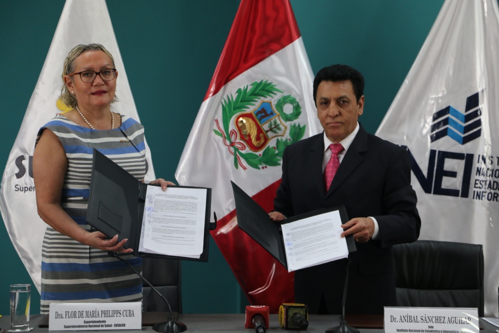 La aplicación de la encuesta se realizará gracias a la firma de un convenio suscrito el día de hoy, entre la superintendente de SUSALUD, Dra. Flor de María Philipps, y el jefe del INEI, Víctor Aníbal Sánchez Aguilar.