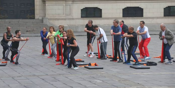 Según explicó, ese fue el objetivo de la rutina de ejercicios físicos realizada esta mañana por el presidente Kuczynski y los ministros de Estado en el Patio de Honor de Palacio de Gobierno.