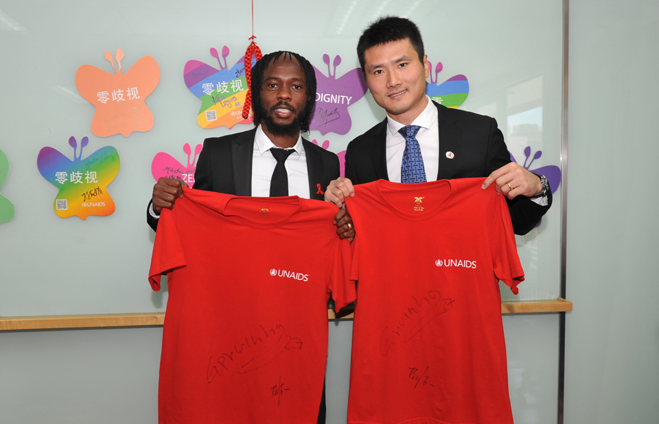 Pekín, China.-  Dos grandes estrellas del fútbol han unido sus fuerzas para animar a los jóvenes de China a que se informen y se protejan del VIH. Gervinho, embajador especial de la juventud y la colaboración entre China y África de ONUSIDA y Shao Jiayi, Embajador de Buena Voluntad Nacional para China de ONUSIDA, participaron en un evento que los medios de comunicación chinos bautizaron como Deportes para el cambio, moderado por otro Embajador de Buena Voluntad Nacional de ONUSIDA, la estrella de la televisión James Chau. Michel Sidibé, director ejecutivo de ONUSIDA, también asistió al evento en Pekín.02_YWW_9103