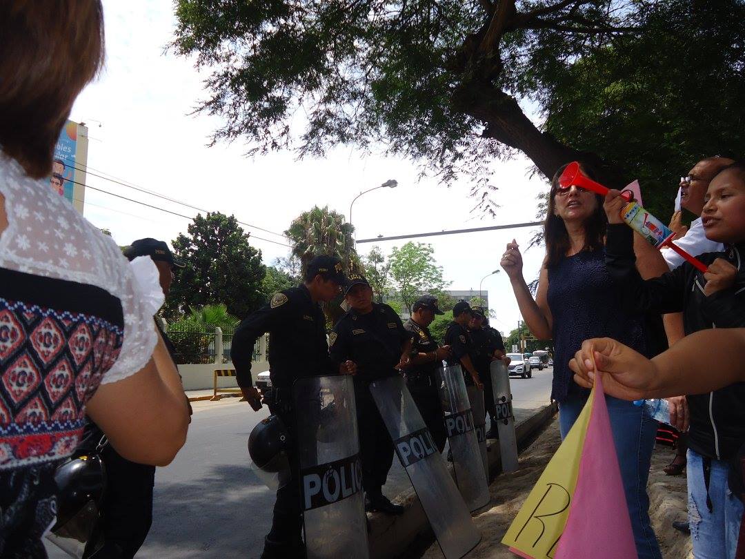 Aunque la protesta fue pacífica, un contingente policial resguardó las instalaciones del MINSA y los retiró de la puerta de la institución.