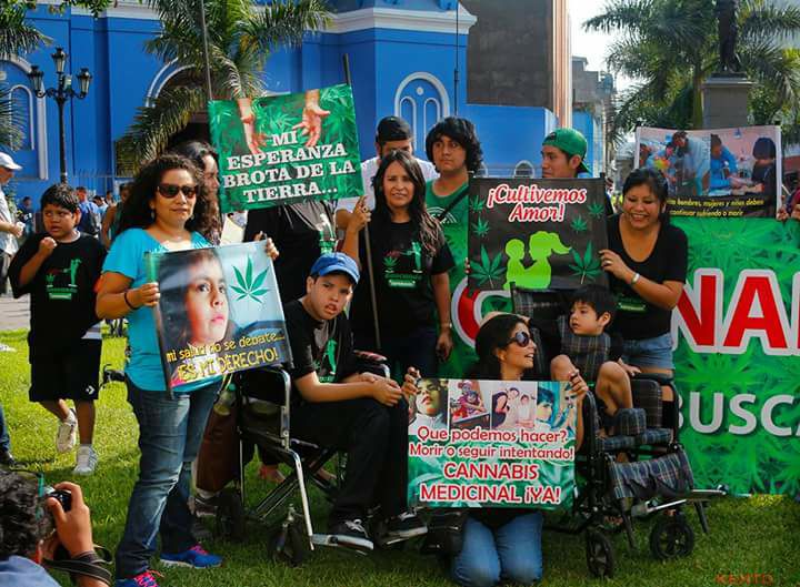 Lima, Perú.- Integrantes del colectivo Buscando Esperanzas Perú, que promueve la legalización de la marihuana para uso medicinal, realizan una marcha para solicitar a las autoridades el uso del cannabis para aliviar los dolores de cientos de personas que sufren epilepsias y enfermedades crónicas.