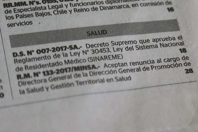 Lima, Perú.- El concurso nacional de admisión al residentado médico será el único medio para ingresar a los programas de segunda especialización profesional y constará de una evaluación curricular y el examen escrito, según lo establece el decreto supremo N°007-2017 del Ministerio de Salud publicado hoy en las normas legales.