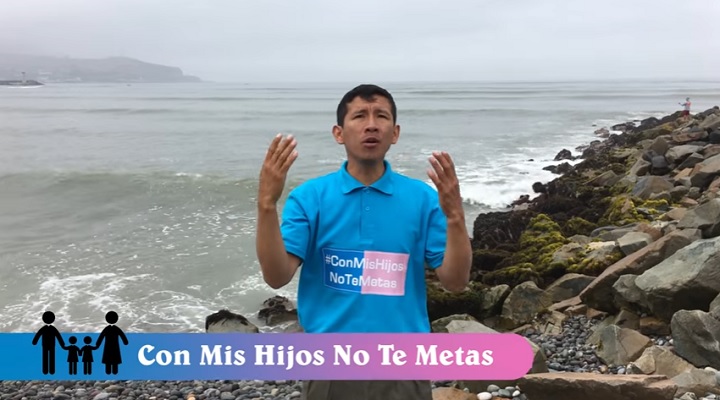 ¡Tienes el demonio dentro!, grita una mujer a un activista LGTBI. Está furiosa y viste una blusa rosada. Como si los colores del movimiento #Conmishijosnotemetas marcaran un prototipo acerca de las prendas a usar cada persona de acuerdo a su sexo. El activista gay, quien durante los primeros minutos guarda silencio, carga un cartel. “Dios ama a todos por igual”, detalla la pancarta. Sin embargo, la señora indignada arremete nuevamente alegando que un espíritu maligno está dentro del joven homosexual.