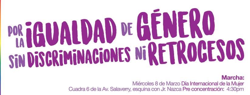 Lima, Perú.-  Como todos los años, el Colectivo Canto a la Vida convocó a una marcha para el próximo 8 de marzo, Día Internacional de la Mujer, para expresar su respaldo a la igualdad de género como uno de los enfoques del Currículo Nacional Escolar. La movilización iniciará a las 6 de la tarde, en la cuadra 6 de la avenida Salaverry, cruce con jirón Nazca, en Jesús María.