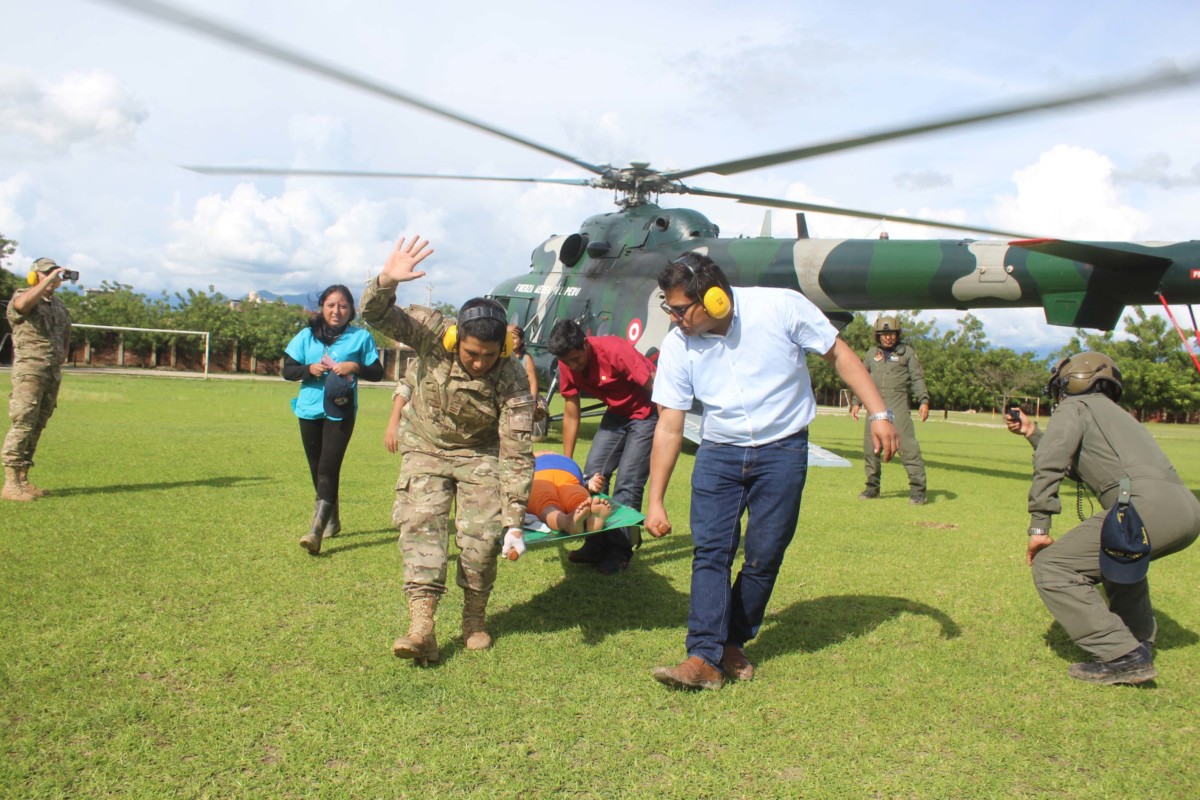 A primera hora, el helicóptero de la Fuerza Aérea del Perú (FAP) se trasladó hasta la localidad de Chungayo, en el distrito de Santo Domingo, provincia de Morropón, para recoger a Violeta López López, de 29 años, con 28 semanas de gestación y afectada por una insuficiencia respiratoria.