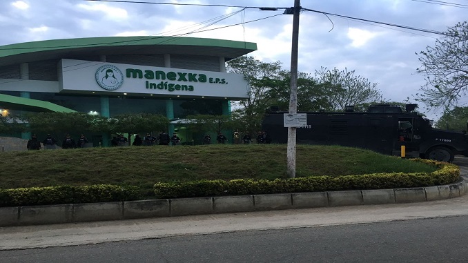 A raíz de la intervención y liquidación de la EPS Indígena las autoridades indígenas zenú en compañía de la guardia indígena ingresaron a la fuerza a las instalaciones de la entidad y a esta hora se reúnen con funcionarios de la Superintencia de Salud