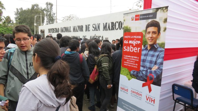 Lima, Perú.- En el marco del “Día Nacional de la Prueba de VIH” (10 de junio), el Ministerio de Salud (Minsa) realizó una feria informativa y campaña gratuita de despistaje del Virus de Inmunodeficiencia Humana (VIH) en la Universidad Nacional Mayor de San Marcos. Fueron 1523 estudiantes quienes se realizaron la prueba de manera rápida, sencilla y confidencial.