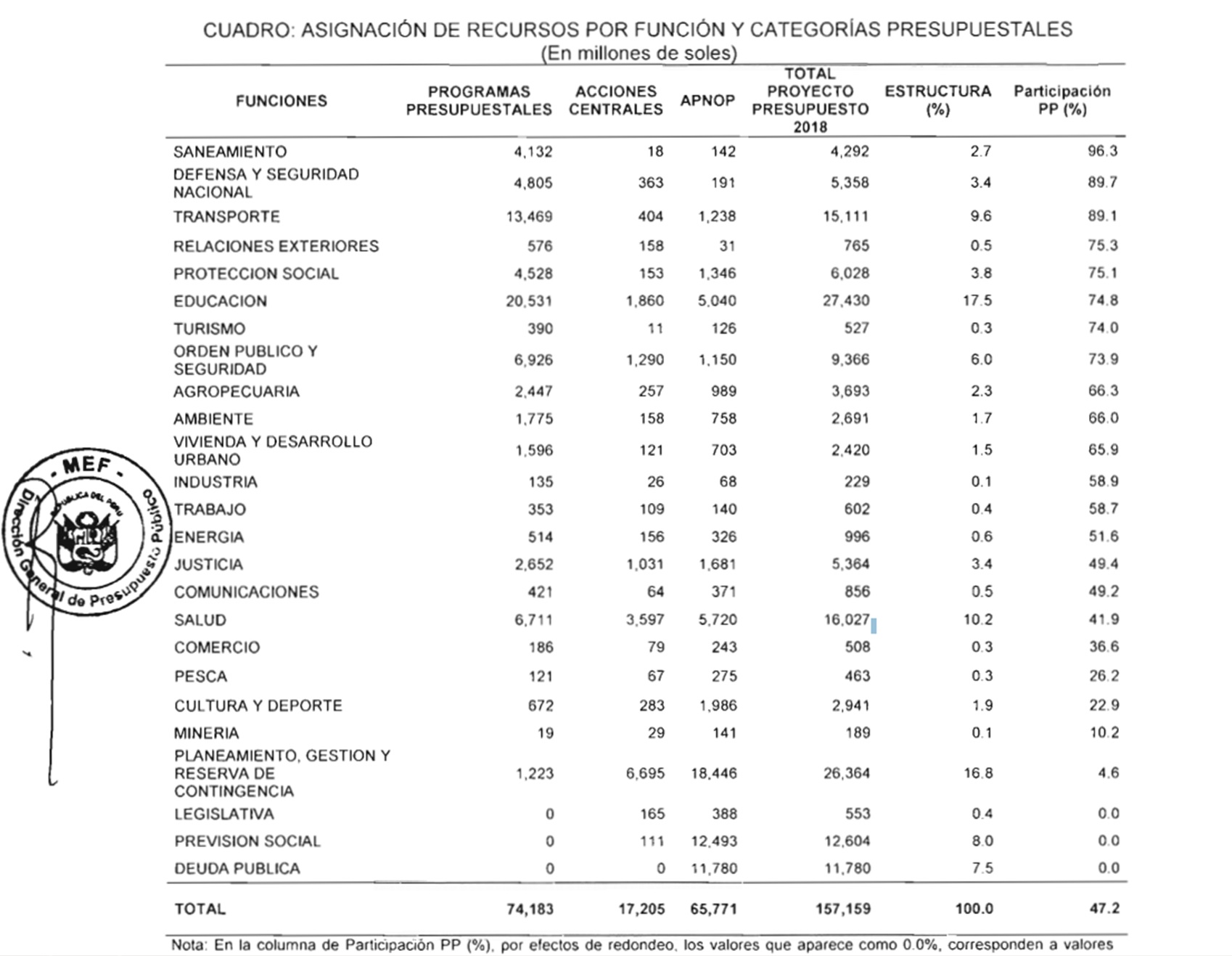 Cabe indicar que el proyecto de presupuesto para el 2018 asciende a S/157,159 millones y representa el 21% del PBI. El primer ministro indicó que 5% de este incremento responde al normal del presupuesto y 5% recursos que se destinarán a la reconstrucción del niño costero.