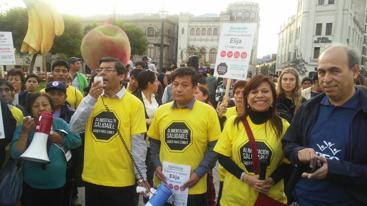 Con pancartas en mano, los manifestantes, pidieron al Congreso de la República, aprobar leyes que favorezcan la salud de los peruanos y peruanas y no privilegiar a la industria alimentaria, que según los marchantes, vienen haciendo un fuerte lobby en el congreso de la República.