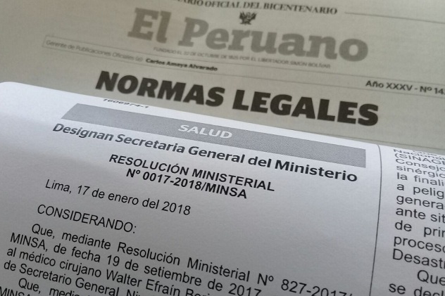 Designación se oficializó a través de la Resolución Ministerial Nº 0017-2018/MINSA publicada en El Peruano.