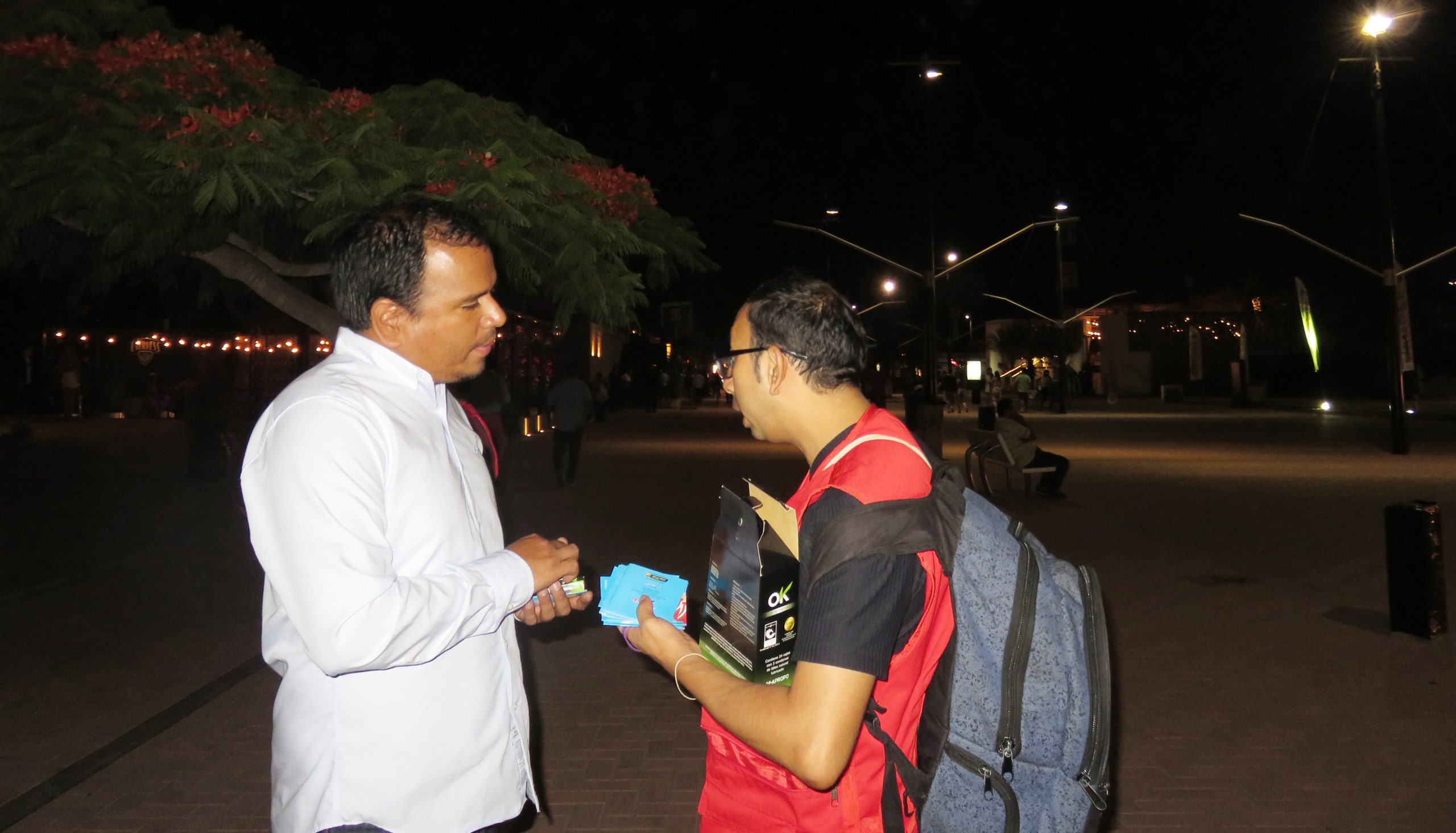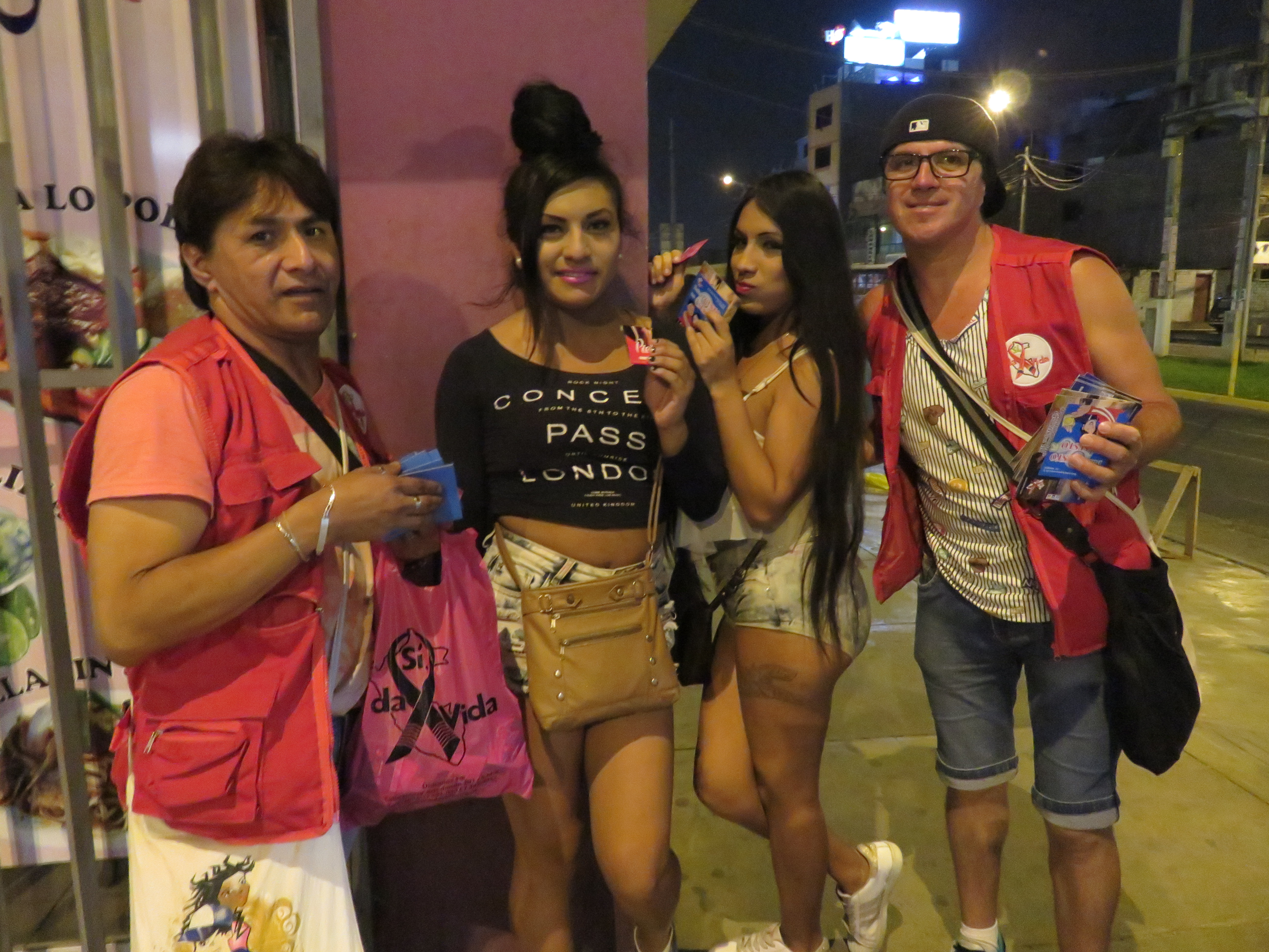 «Son las tres de la mañana y aún seguimos repartiendo información para que las personas conozcan sobre el uso adecuado del condón. Vemos que mucha gente lo recibe con agrado y buen humor, pero hay otros que parece molestar este tipo de actividades. Lo importante es ir creando conciencia que todos y todas debemos cuidarnos», dice Luis Manuel Zegarra, uno de los integrantes de los voluntarios de Sí, da Vida.