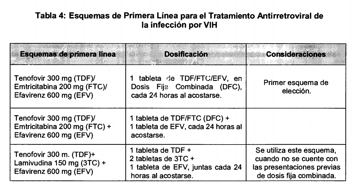 Ver cuadro del primer esquema de tratamiento para el VIH.