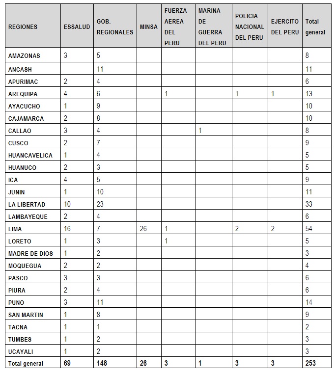 Cabe señalar que los 253 hospitales e institutos especializados de salud que serán visitados durante el operativo representan el 100% del total de establecimientos de salud públicos categorizados del segundo y tercer nivel existentes en el país, actualmente en funcionamiento y casi la mitad del total de establecimientos hospitalarios.