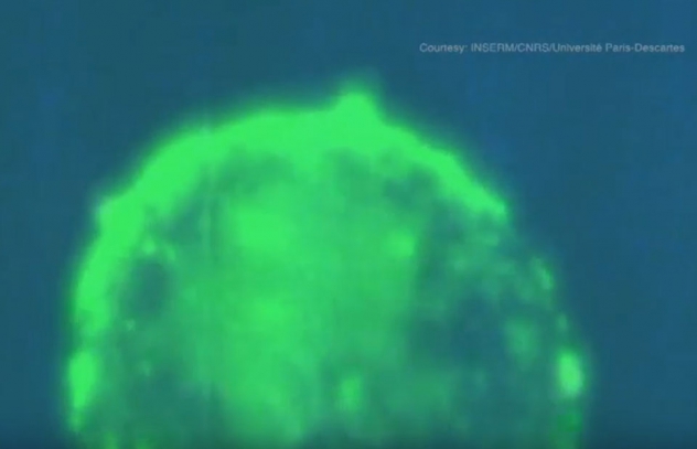 Necesitábamos que fueran fluorescentes para poder visualizarlos y realizar un seguimiento de su entrada en la mucosa por medio del escaneo fluoroscópico en tiempo real. Por último, tuvimos que diseñar un sistema que permitiera visualizar el contacto entre las células con las lentes del microscopio. Evidentemente, hicimos todo esto en un entorno absolutamente seguro, y todos llevábamos dos pares de guantes, gorro, chaqueta, gafas y máscara.