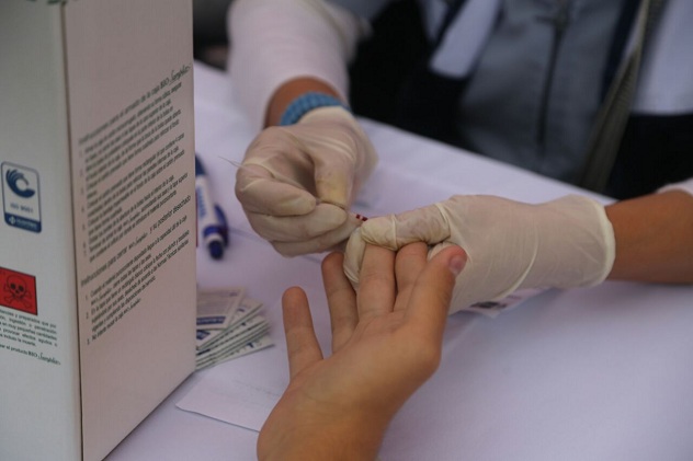 “La prueba rápida consiste en extraer una gota de sangre de su dedo, la cual es analizada en un dispositivo que reacciona ante el VIH. Los resultados son entregados en 20 minutos de manera confidencial”, explicó.