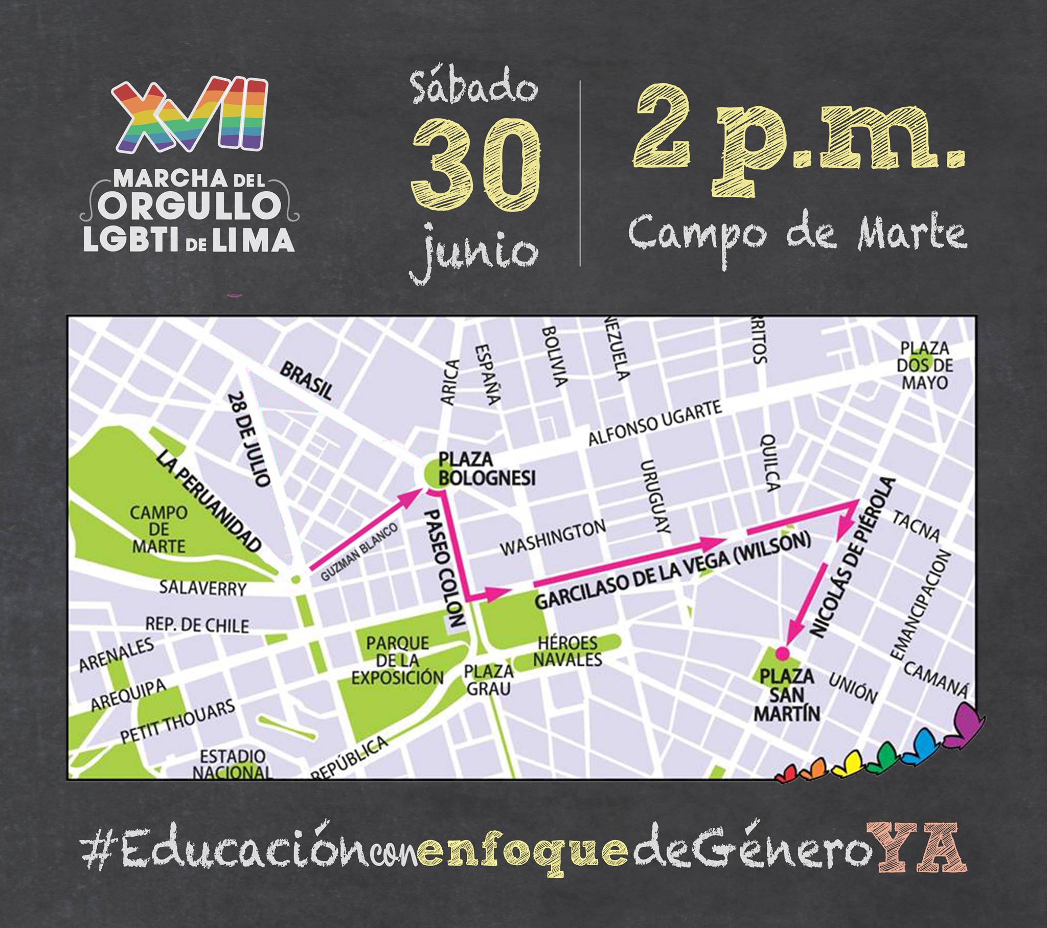 Lima, Perú.- Pese a las amenazas, hoy las calles del Centro de Lima serán escenario de la marcha en defensa de los derechos de las personas Lesbianas, Gays, Trans, Bisexuales e Intersexuales (LGTBI), que este año celebra su edición número 17, cuyo lema de este año es “Educación con enfoque de género ¡YA!.