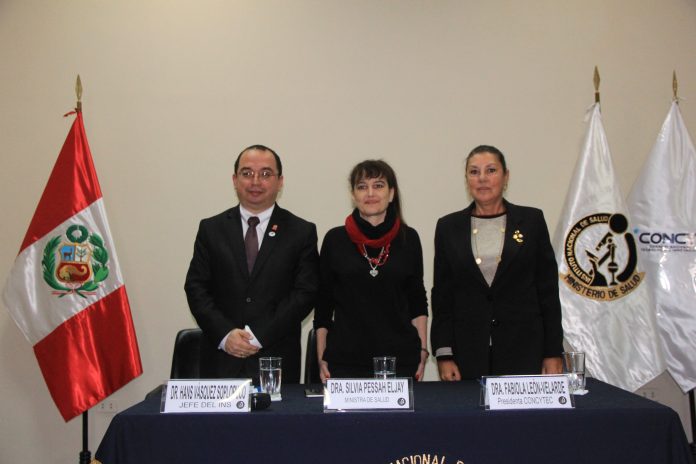 Lima, Perú.- La ministra de Salud, Silvia Pessah Eljay, y la presidenta del Consejo Nacional de Ciencia, Tecnología e Innovación Tecnológica (Concytec), Dra. Fabiola León – Velarde, lanzaron hoy el Fondo Concursable para Financiar Investigaciones en Salud INS – Concytec 2018, que cuenta con un monto de 6 millones 800 mil soles.