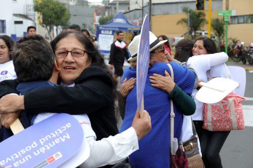 Durante toda la semana, el Minsa ha venido incentivando la práctica del abrazo en varios puntos de la capital.