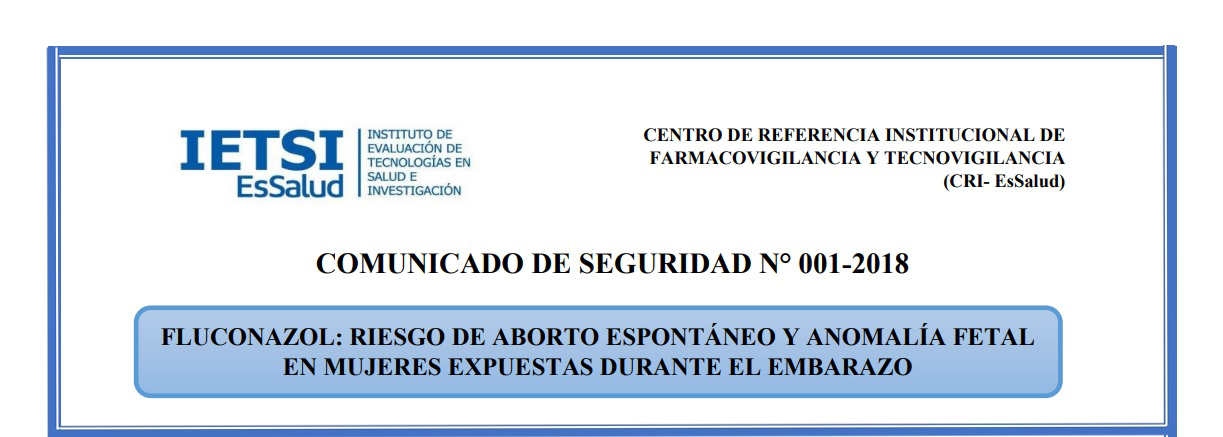 Lima,Perú.- El Instituto de Evaluación de Tecnologías en Salud e Investigación (IETSI), a través del Centro de Referencia Institucional de Farmacovigilancia y Tecnovigilancia (CRI-EsSalud), comunica a los profesionales de la salud y Comités de Farmacovigilancia (CFV) de nuestra institución el riesgo de aborto espontáneo y anomalía fetal en mujeres expuestas durante el embarazo.