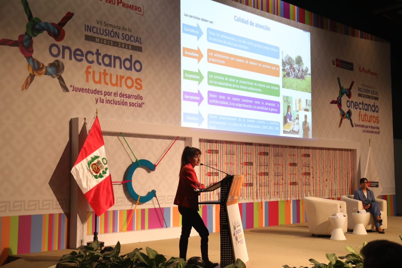 La titular del Minsa participó con la ponencia “Aporte del Ministerio de Salud al desarrollo y la inclusión social en adolescentes y jóvenes” durante la VII Semana de la Inclusión Social, que se realiza en el Centro de Convenciones Lima, en San Borja.