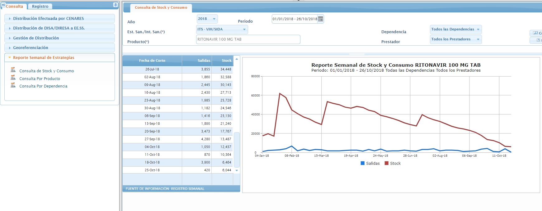 Pese a que los niveles de abastecimiento de ritonavir, tampoco son los óptimos en el Ministerio de Salud, se realizó el préstamo. Según se visualiza en el sistema de gestión de abastecimiento de medicamentos de Cenares, Ritonavir se encuentra en su punto crítico a nivel nacional.