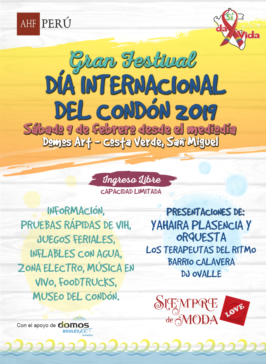 El evento se realizará en los Domos Art en el distrito de San Miguel con ingreso libre desde el medio día y estarán presentes 30 stands informativos de diversas organizaciones, así como el despistaje del VIH.También se realizará un concierto con Yahaira Plascencia, un museo del condón, zonas de juegos feriales, música electro, desfile de moda, el karaoke condón, entre otros.