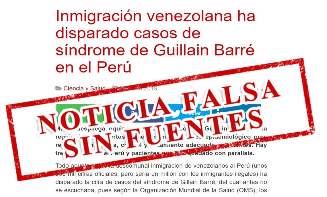 Las noticias que más atemorizan, son aquellas que comprometen el tema de la salud. El Guillain Barré, síndrome que ha provocado que el Ministerio de Salud, declare a 5 regiones del país en emergencia por presencia de decenas de casos atípicos, trajo consigo que redes ya empezaran a viralizar que todo es causa de los migrantes venezolanos, cuando esta afirmación es falsa. Esta falsa información no sólo desinforma, sino crea xenofobia en un país altamente discriminador.
