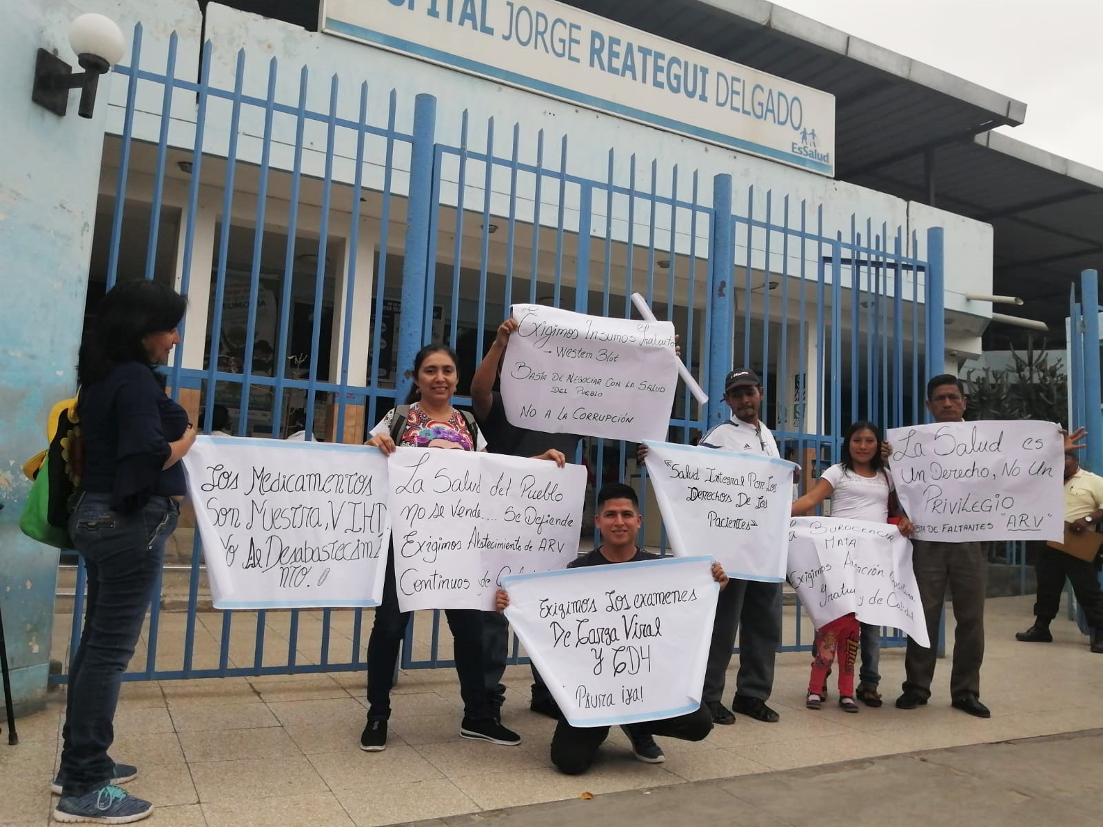 Piura, Perú.- Diversos colectivos como Gam Hossana,Jóvenes Cambiando Vihdas y la Red Peruana de Mujeres Viviendo con VIH se juntaron para realizar un plantón frente a los hospitales Jorge Reátegui y Cayetano Heredia para hacer oír su voz de protesta ante las autoridades del seguro social.