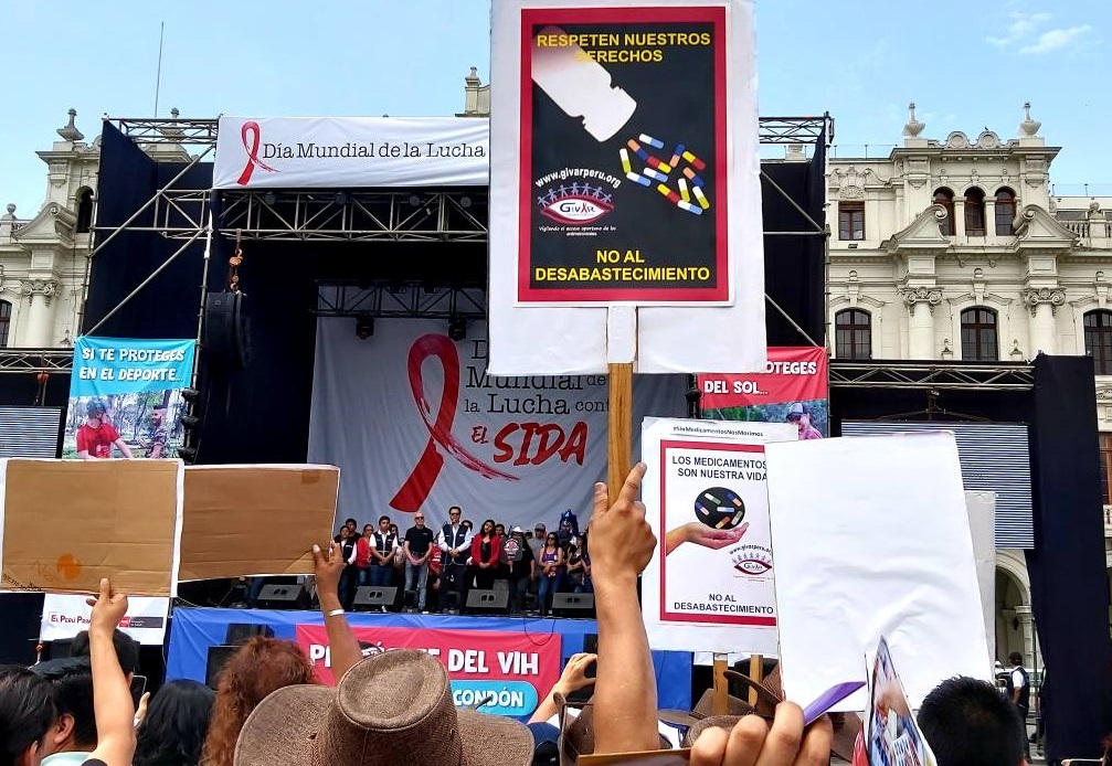 Lima, Perú.- «No hay nada que celebrar», coreaban un grupo de activistas por los derechos de las personas con VIH durante la inauguración oficial de la feria del 1 de diciembre en el marco del Día Mundial de la Respuesta al VIH.