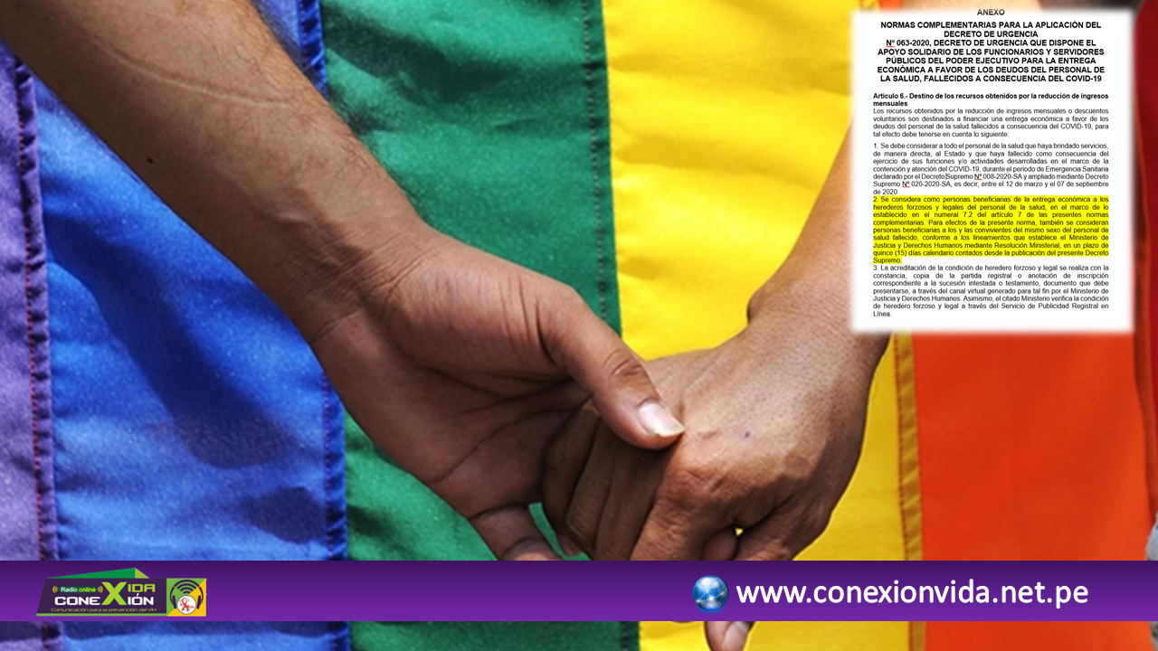 A través del artículo 6, inciso 2 del Anexo del Decreto Supremo N° 220-2020- EF se reconoce como uno de los beneficiarios del apoyo económico a “los y las convivientes del mismo sexo del personal de salud fallecido”. Asimismo, el Ministerio de Salud se encargará de realizar el listado del personal de salud fallecido, y el Ministerio de Justicia y Derechos Humanos, de los beneficiarios.