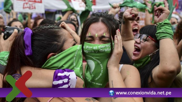 La aprobación fue recibida con un estallido de alegría por miles de jóvenes de pañuelo verde, emblema de la campaña a favor de la legalización del aborto, que pasaron toda la noche a las afueras del Congreso, en Buenos Aires, a la espera de la votación en este país de mayoría católica y cuna del papa Francisco.