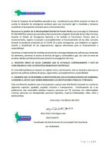 Finalmente, reconocieron la gestión del municipio de Puente Piedra que promulgó la ordenanza 389 que reconoce legaliza la constitución de las ollas comunes en su jurisdicción; no obstante, es una medida insuficiente para la situación que afrontan muchos otras regiones y distritos del país.