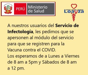 En Lima, por ejemplo, la atención en el hospital María Auxiliadora (San Juan de Miraflores) será a partir de mañana 19 de junio; mientras que en el hospital Cayetano Heredia (San Martín de Porres), desde este lunes 21. En cambio, en el hospital Arzobispo Loayza (Cercado de Lima) el proceso de vacunación se iniciará a partir del lunes 28 de junio y los usuarios deben registrase en el módulo del Servicio de Infectología: de lunes a viernes de 8 de la mañana a 5 de la tarde, y los sábados de 8 de la mañana hasta el mediodía.