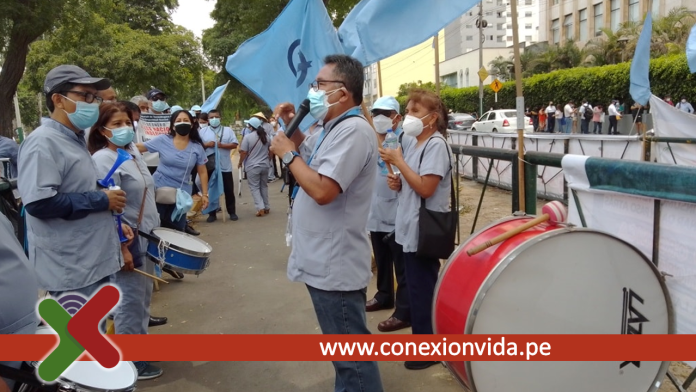 Lima – Perú .- Encadenados, con carteles, tambores y bombos, tecnólogos médicos de EsSalud protestan y se dirigen Congreso de la República exigiendo la implementación de unidades orgánicas de Tecnología Médica en establecimientos de salud.