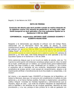 Internacionales.- Después de más de 500 días de espera, la Corte Constitucional tomó una decisión histórica sobre el aborto en Colombia y fijó nuevas reglas para acceder a este procedimiento. Con una votación de cinco a favor y cuatro en contra, el alto tribunal determinó ampliar el aborto libre y legal hasta la semana 24 y dejar en firme las tres causales existentes en las que se puede abortar sin cometer algún delito: malformación del feto, abuso sexual a la mujer y riesgo a la vida de la madre.