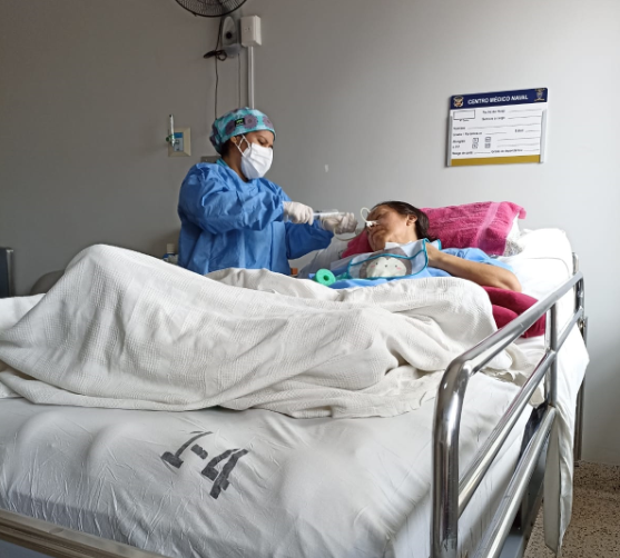 Al llegar a la Clínica cerca a las 4:00 p.m Nataly ingresa a la fuerza, señala que le impedían el ingreso, logra ver a su madre en una cama post operación, solo con una mascarilla de oxigeno, no en una cama UCI, como requería una caso de esa complejitud.