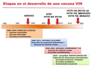 En el caso de las vacunas que se han desarrollado frente al VIH, podemos distinguir tres etapas.