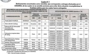 Además, se identificó la ausencia de productos en 13 lotes diferentes de medicamentos transferidos por el CENARES. Basado en ello, se evidencia la falta de cumplimiento de las funciones de coordinación, custodia y control patrimonial por parte de los ex funcionarios de la DEMID, Dirección de Acceso y Uso Racional de Medicamentos y de la Dirección de Logística de la entidad.