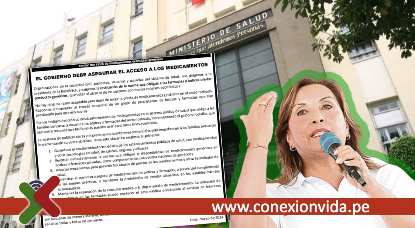 La decisión de no prorrogar más esta medida recae en el Poder Ejecutivo, a través del Ministerio de Salud, por lo que las organizaciones suscritas al documento, exigen al gobierno de Dina Boluarte la restitución de la norma que obligue a las farmacias y boticas ofertar