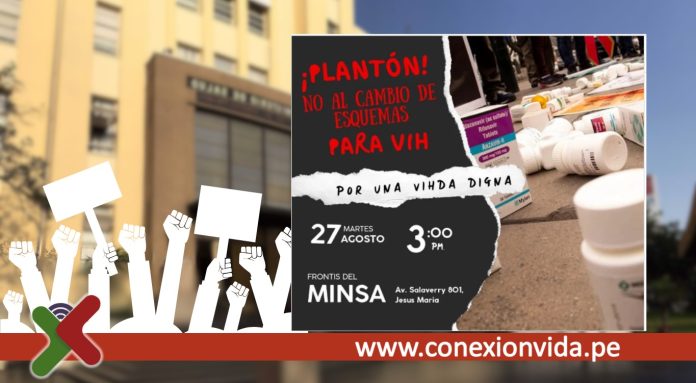Lima – Perú.- Decenas de personas pertenecientes a organizaciones de pacientes e instituciones de defensoras de derechos en salud, realizan un plantón en las afueras del Ministerio de Salud (Minsa) para exigir el abastecimiento oportuno sin cambios de esquema al tratamiento antirretroviral que impone el Minsa ante problemas en la cadena de suministro de medicamentos. La concentración se realizará desde las 3 de la tarde del martes 27 de agosto, en las afueras del Ministerio de Salud, ubicado en la avenida Salaverry en Jesús María.