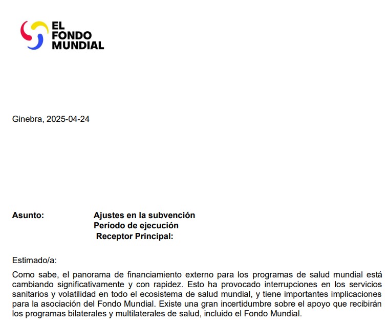 A través de una comunicación dirigida a los receptores principales de subvenciones, el organismo internacional explicó que el entorno de financiamiento externo “está cambiando significativamente y con rapidez”, lo que ha generado volatilidad e interrupciones en los servicios de salud en distintos países.