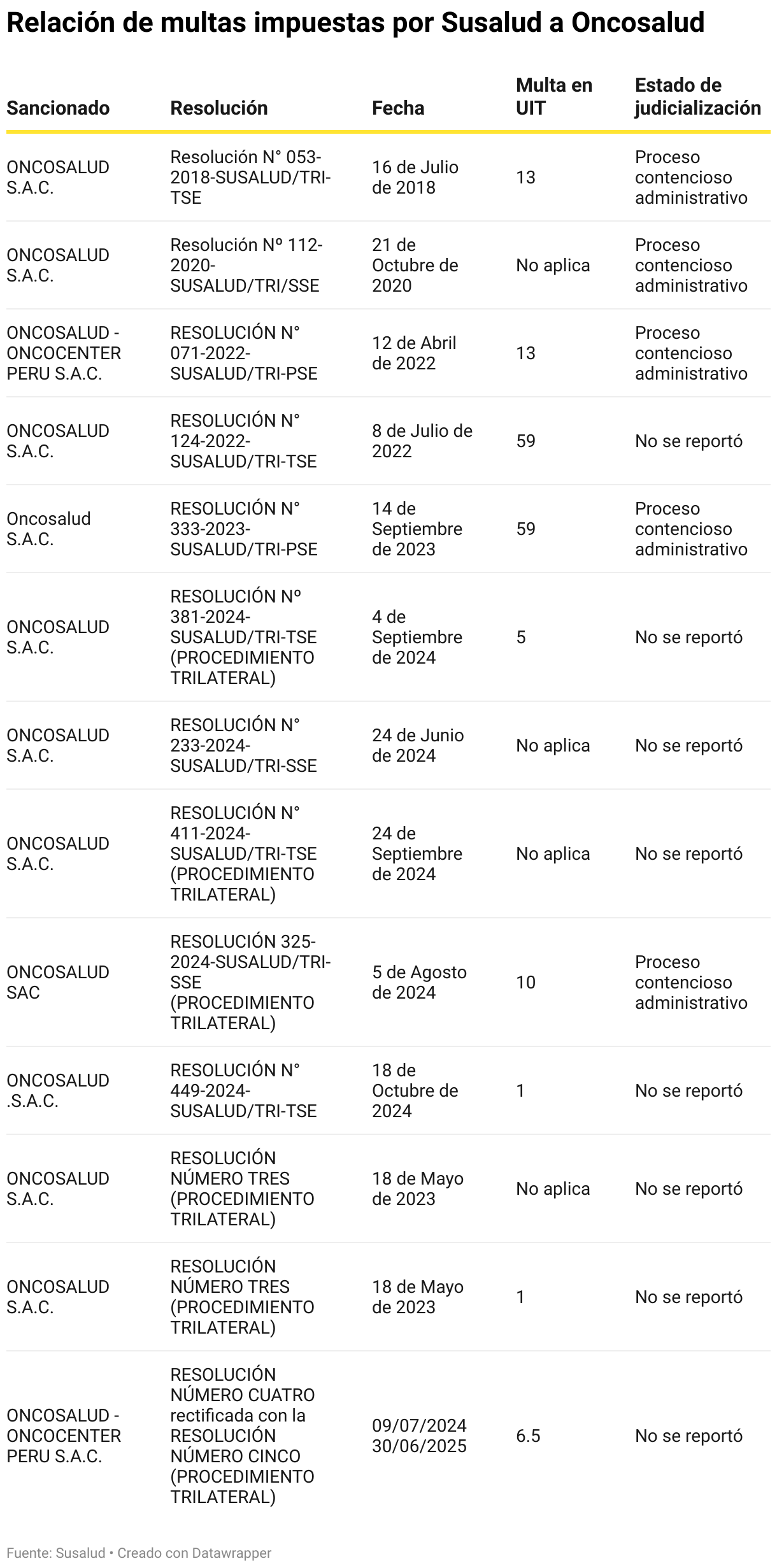 Lima, Perú. – De acuerdo con un informe de El Foco, entre 2018 y 2025 Oncosalud recibió 13 sanciones equivalentes a 167.5 UIT (S/ 896.125), aunque hasta la fecha solo ha pagado S/ 37.450. La mayor parte de las multas ha sido llevada al Poder Judicial, un mecanismo que permite a la empresa retrasar su cumplimiento, dejando en suspenso la reparación a sus asegurados.