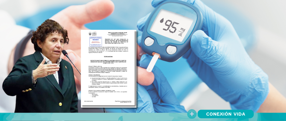 El Proyecto de Ley N.º 12904, presentado por la congresista Susel Ana María Paredes Piqué, del Bloque Democrático Popular, propone que el Ministerio de Salud y las entidades públicas del sistema nacional de salud entreguen gratuitamente kits de medición de glucosa —que incluyan glucómetro, tiras reactivas y lancetas— a personas con diabetes tipo 1, tipo 2 y diabetes gestacional en todo el país.